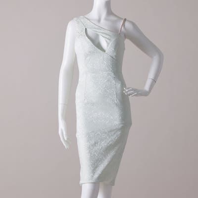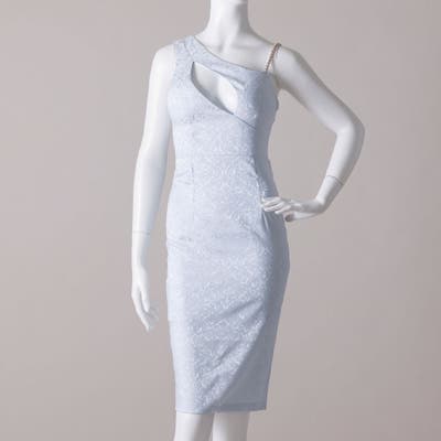 デコルテなど露出しながらもタイトライン+膝丈でさらに上品さアップ。