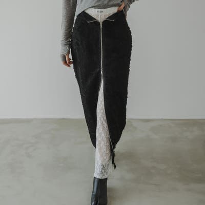 レイヤードスタイルを楽しめるレースフレアパンツ。