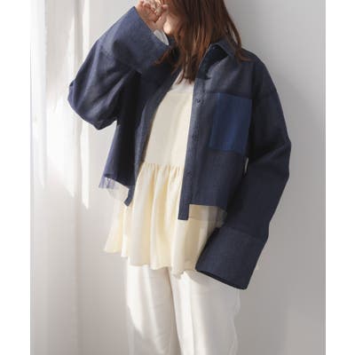 繊細なチュールがレイヤードされたデニムショートジャケット。