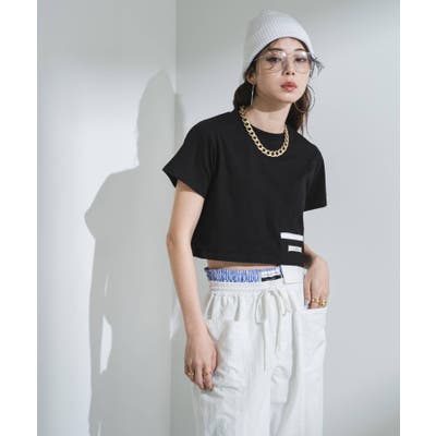 クロップドバイカラーポケットTシャツ 韓国 夢展望