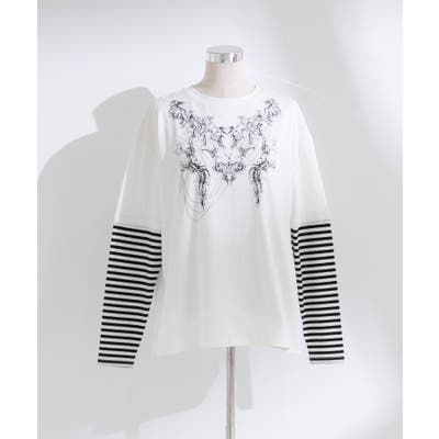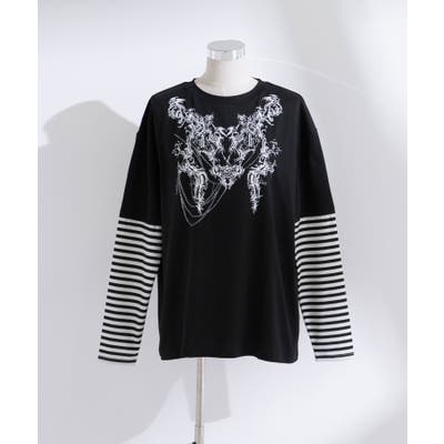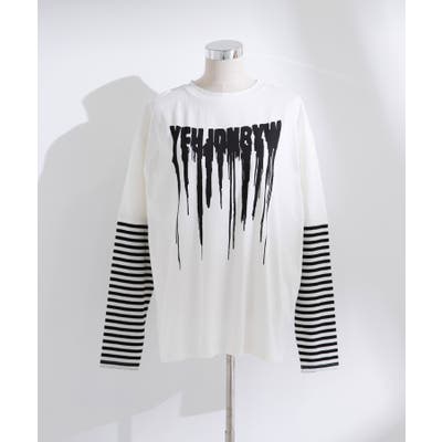 ロゴボーダー長袖レイヤードカットソー 韓国 夢展望