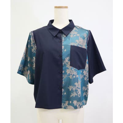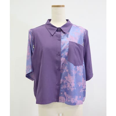 インパクト柄配色肩ジップ開き半袖シャツトップス 韓国 夢展望