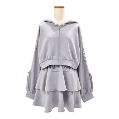 パーカーのお袖にはふりふりのレースとベロアシルバーのラインテープを施し、どこから見ても映えるデザインに♪