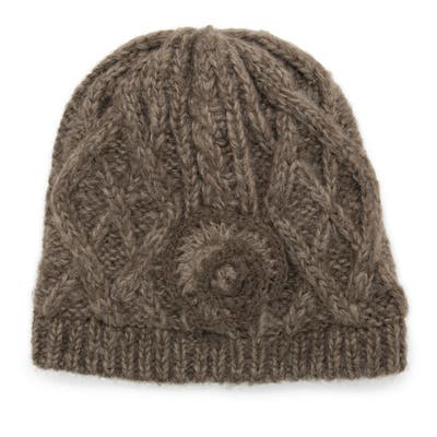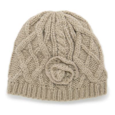 MIX糸を使用したケーブル模様のお花モチーフ付きニット帽を入荷しました。内側が2重構造になっているので保湿力もあり防寒対策にも期待できそうです。サイドにつけられたお花モチーフのふんわり感は、まさに大人可愛い仕上がりになっています。被り口はリブ編みで締め付けがなく、長時間のお出かけにも適しています。※お花のモチーフは縫い付けているため取り外し出来ません。