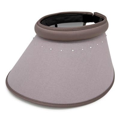 つば裏が白色のためレフ板効果があり、顔が明るく見えるサンバイザーを入荷しました。デザインは、キラキラしたラインストーン配置したちょぴりゴージャスな仕様になっております。頭に挟み込むクリップバイザータイプで、取り外し可能なあご紐が付属品として付いていますので、急に風が吹いても安心です。また、暑い時期に使用するため衛生面にも配慮し、肌に触れる内側スベリ部分はマジックテープで取り外しでき、お洗濯で常に清潔な状態でお使いいただけます。紫外線対策にも有効でUVカット率は90%以上ありますので、普段使いやちょっとしたお出かけ時に役立つアイテムではないでしょうか。