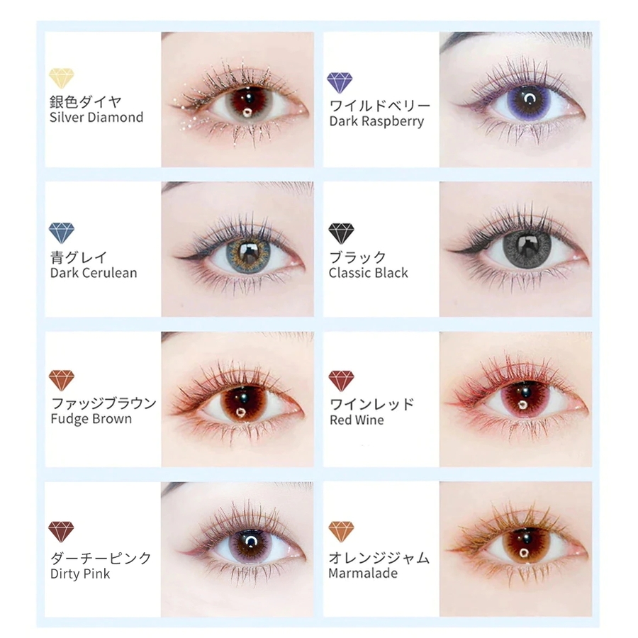 | カラー | クロユリ(チェリーブラック) / 藤の花(ヘイズパープル) / 銀色ダイヤ / 青グレイ / ワイルドベリー / ダーティーピンク / ファッジブラウン / 雪結晶 / オレンジジャム |