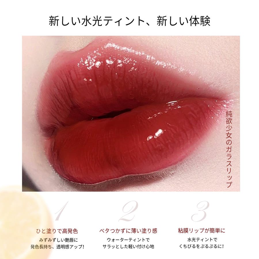 ★ベタつかずに軽い付け心地、瑞々しい水膜リップの仕上がりに、時間が経っても乾燥しにくい